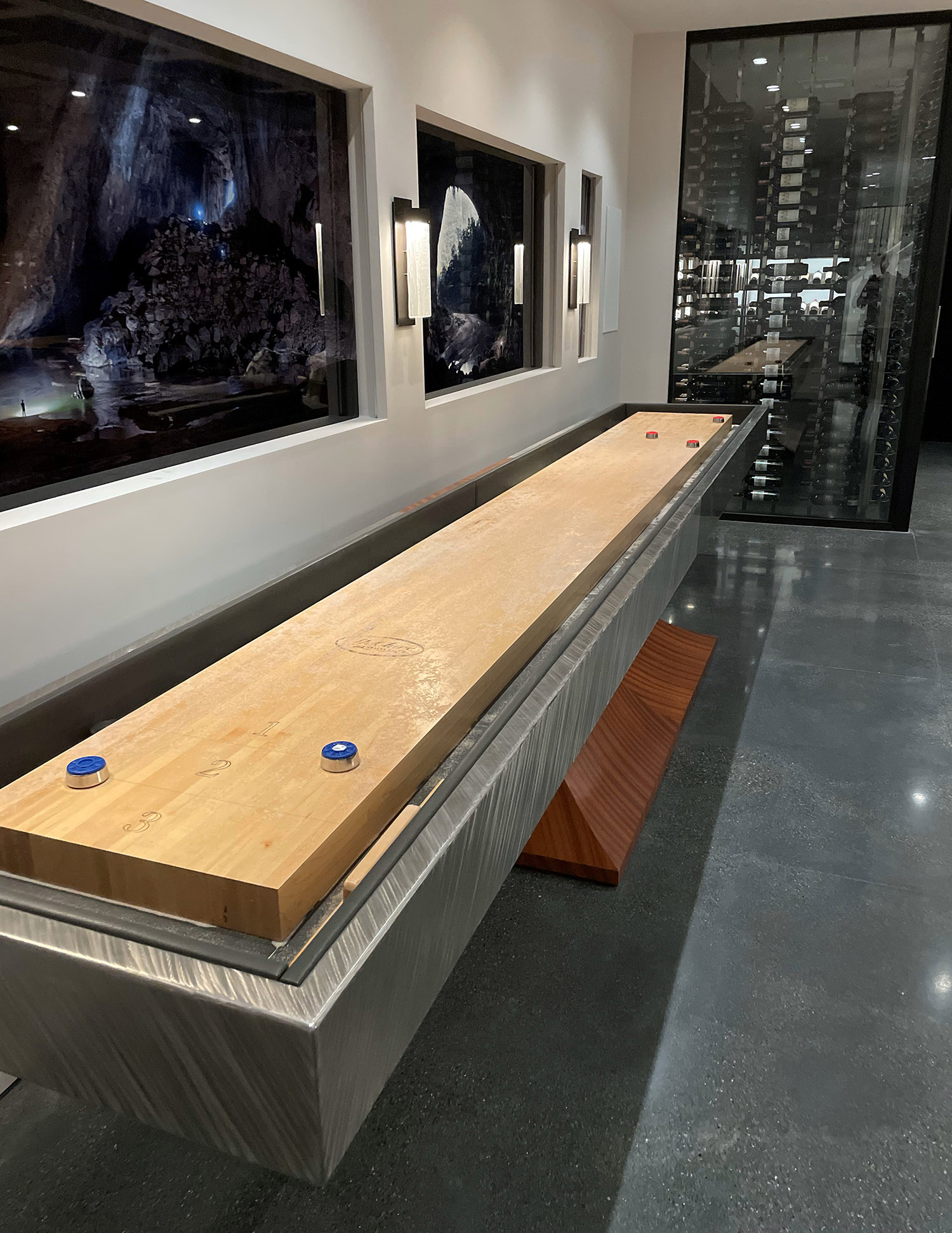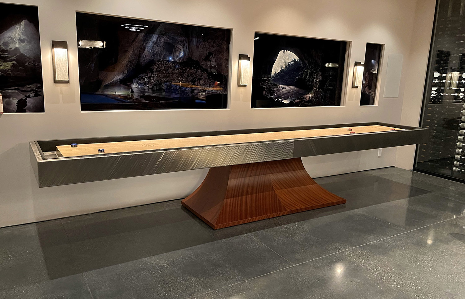Custom shuffleboard tables handcrafted for precision gameplay and stunning design. Browse our gallery for inspiration on customizable game room furniture.