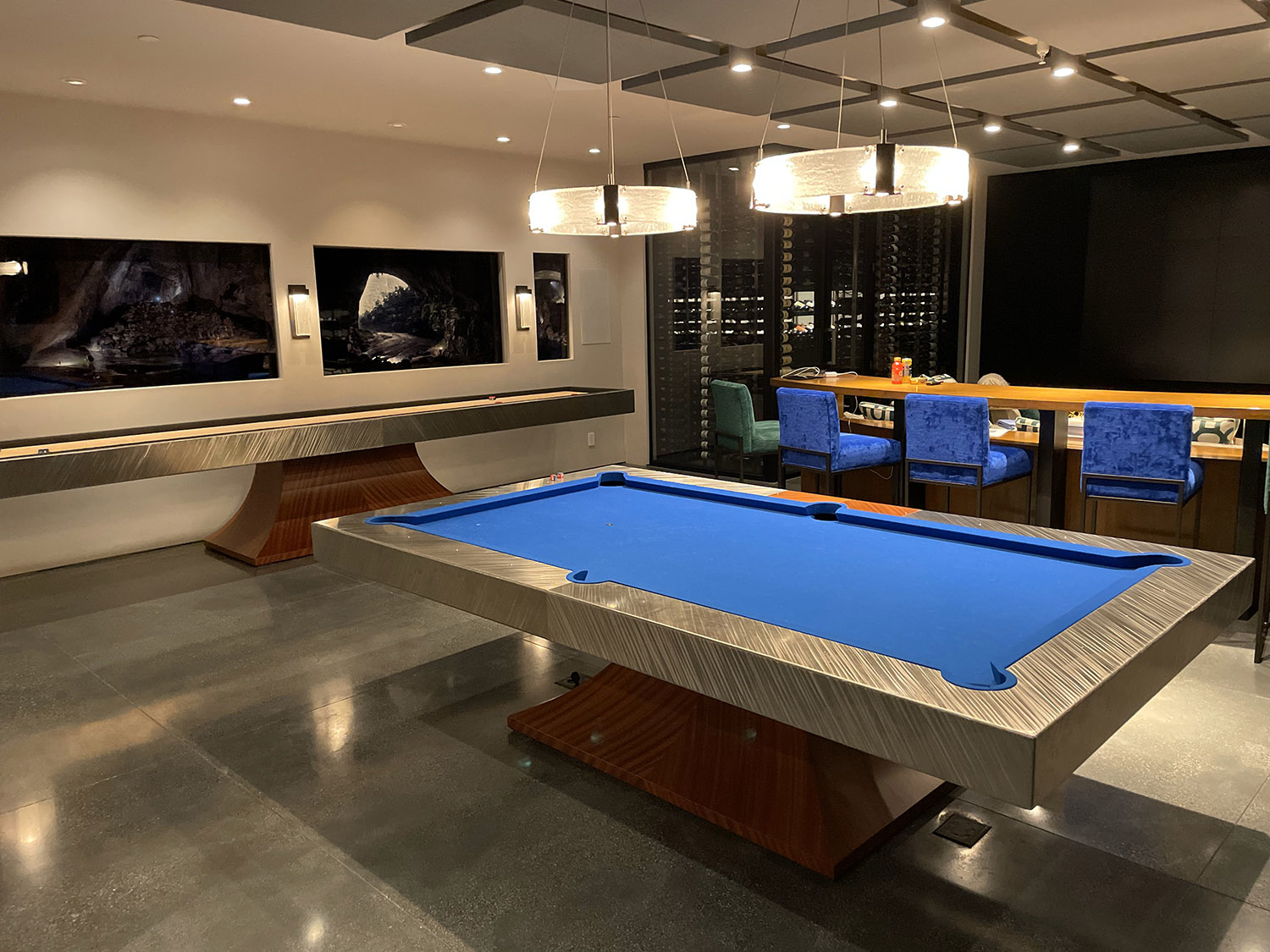 Discover our exquisite collection of custom game room furniture, including custom modern pool tables, shuffleboards, card tables, and accessories. Each piece is handcrafted with precision for unmatched quality and style.